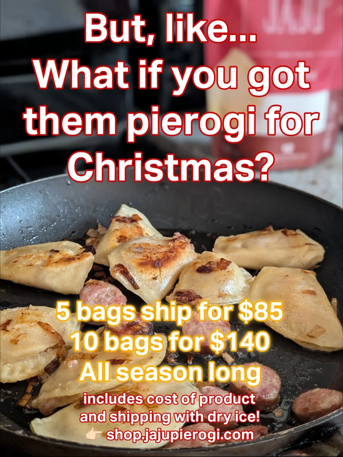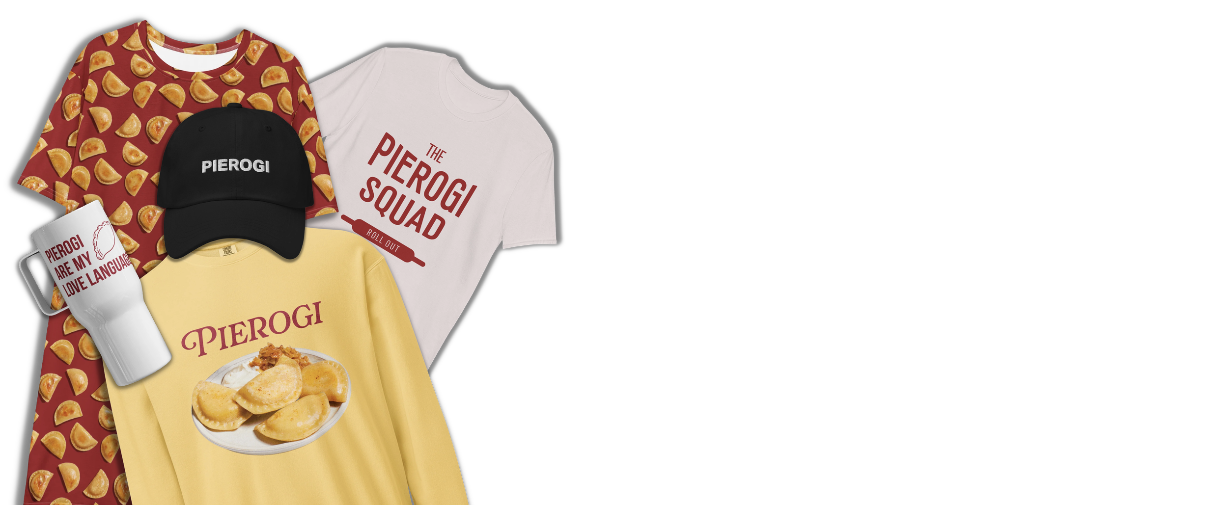 Choose from a variety of flavors, plus kielbasa, and lots of pierogi merch. Special bundle deals available.